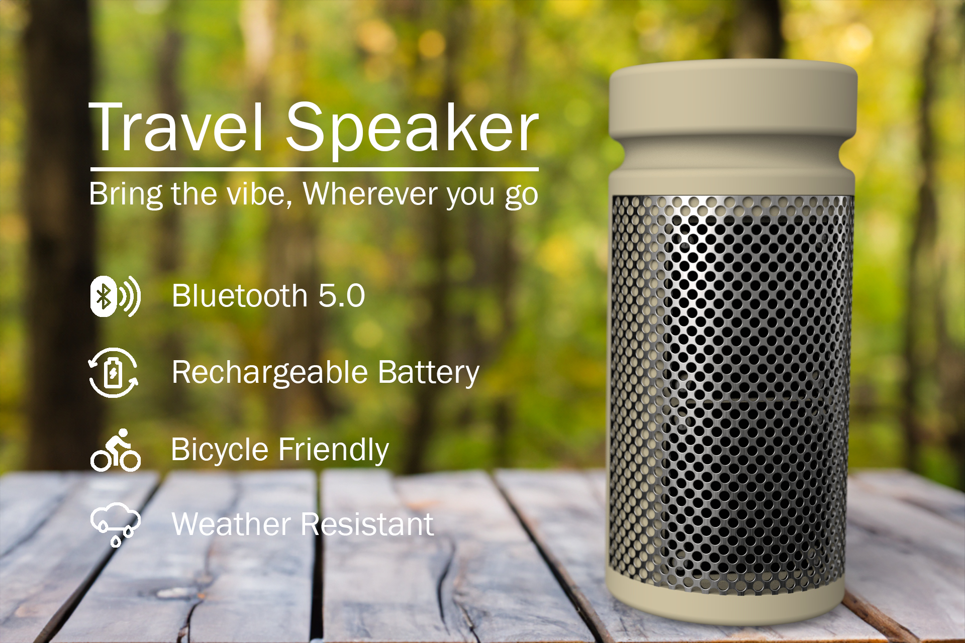 Following an industrial design methodology, the goal of this project was to engage with digital modelling and rendering to design a portable speaker to fill a specific market opportunity. The next task was then to create a working prototype, primarily using additive manufacturing to create the enclosure.